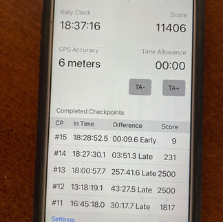 The app will record the time you started each leg, it knows what the set elapsed time to the next gate is and records the time you got there. The app then works out how many seconds early or late you are and records that number of seconds as your leg time penalties. Once you have completed the course it records how many of the GPS timing gates you triggered and totals your time penalties. When you get to the finish and reconnect your Richta phone to the internet (by cell data, hotspot or wifi), your scores for the day are uploaded onto Richta RallyMaster (me) and Richta Scoreboard (for all the world to see).