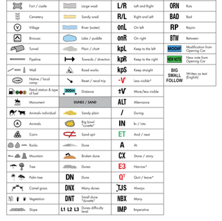 The roadbook example above uses all of the icons, abbreviations and symbols you can expect in a VIME roadbook - a fraction of the full FIA/FIM range. As an experienced road rider, you will find most of the icons very familiar and those that aren’t used in road signs are intended to be intuitive (such as exclamation marks for caution-danger).