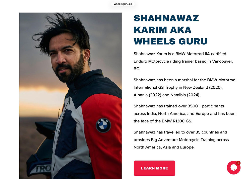 Off-road riding guru Shahnawaz Karim www.wheelsguru.ca will be running a training session for riders wishing to have greater or finer points of their off road riding addressed. His email address is Shahnawaz@wheelsguru.com Please directly him directly to enquire about his activities.