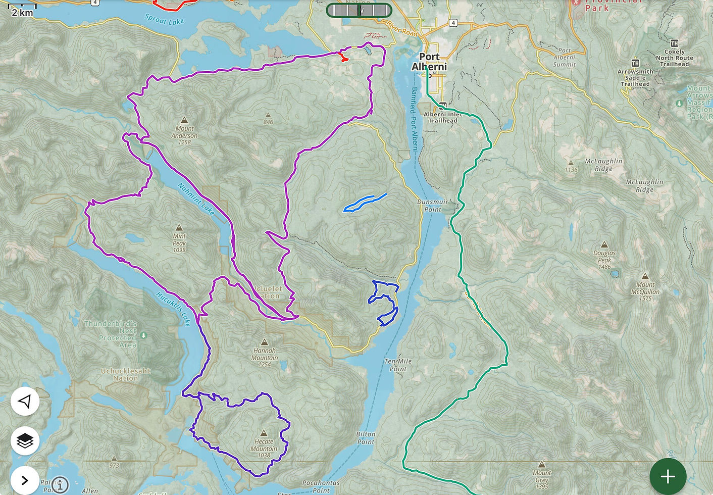 VIME Roadbook practice days. Location Port Alberni, north and south of the Alberni inlet.